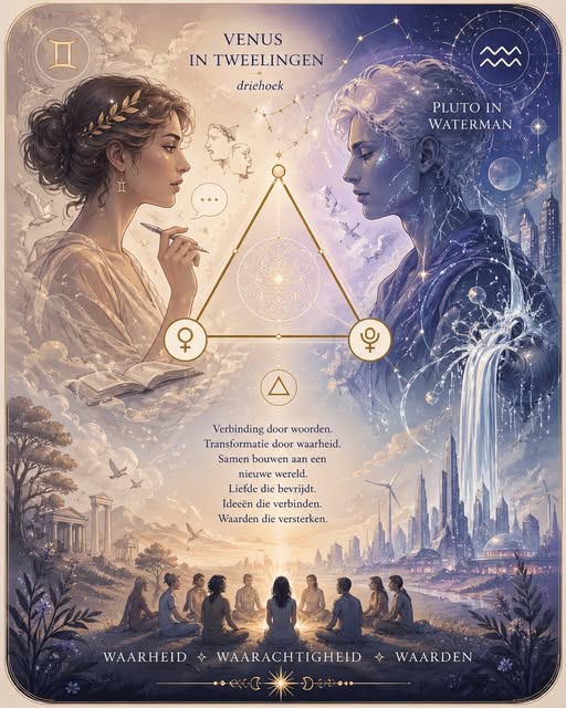 Er waait een krachtige, haast onweerstaanbare stroom door onze relaties, gesprekken en sociale verbindingen. Venus in Tweelingen nodigt uit tot nieuwsgierigheid, dialoog en het verkennen van verschillende perspectieven, terwijl Pluto in Waterman deze energie verdiept en transformeert. Samen creëren zij een dynamiek waarin verbinding niet langer oppervlakkig hoeft te blijven; er ontstaat een intense drang om relaties, vriendschappen en samenwerkingen te baseren op gedeelde waarden, visie en waarheid.