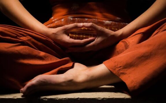 Laat de toon en klank na een paar minuten uitdoven en leg je handen ontspannen op je bovenbenen. Voel wat deze mudra in beweging brengt, alle gedachten, gevoelens, emoties…neem waar. Leg aan het einde van deze oefening je handen in je schoot; misschien wil je even liggen of nog even blijven zitten.