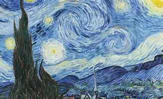 Schilderij ‘Sterrennacht’ van Van Gogh, geschilderd in juni 1889, toen hij in een psychiatrisch ziekenhuis verbleef in Saint-Rémy-de-Provence. (heel diepe lagen zoals hij het zelf vertelde)